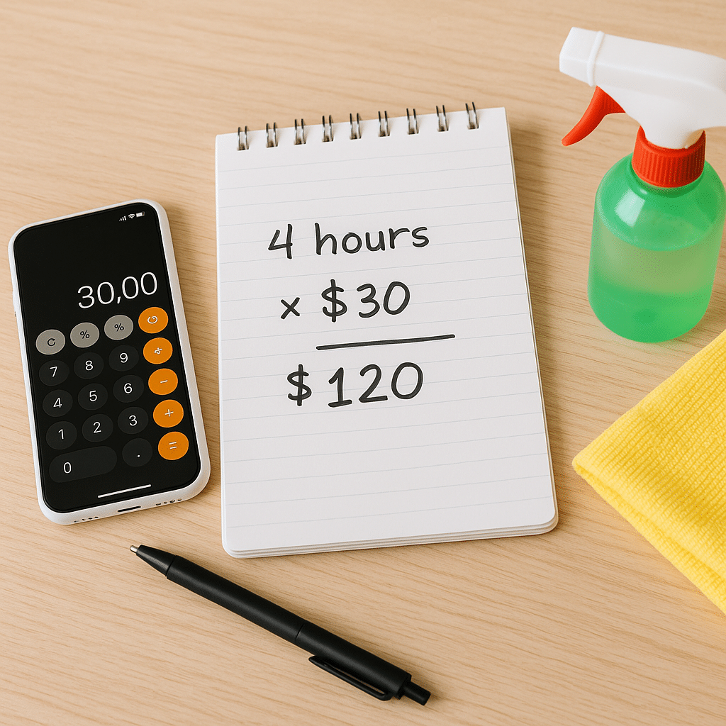 Start with a lower hourly rate while you learn. Time yourself when you clean your own home or a friend’s home. See how long each room really takes. Use those times in future estimates. You will get better with practice.